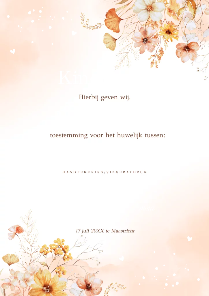 Kinderakte huwelijk bloemen geel oranje goudfolie