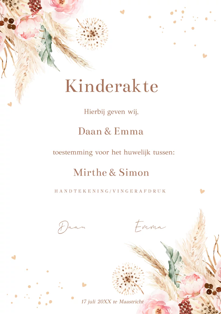 Kinderakte huwelijk bohemian bloemen