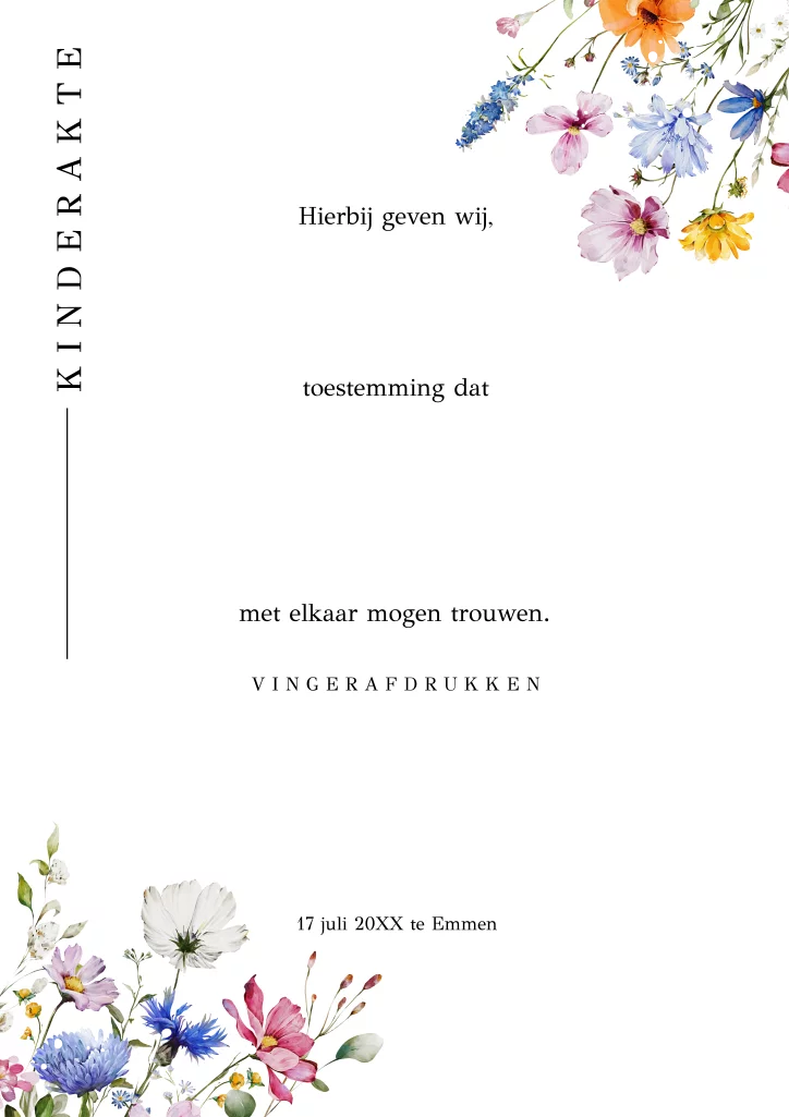 Kinderakte huwelijk met zomerse bloemen helemaal in stijl van jullie trouwkaart.