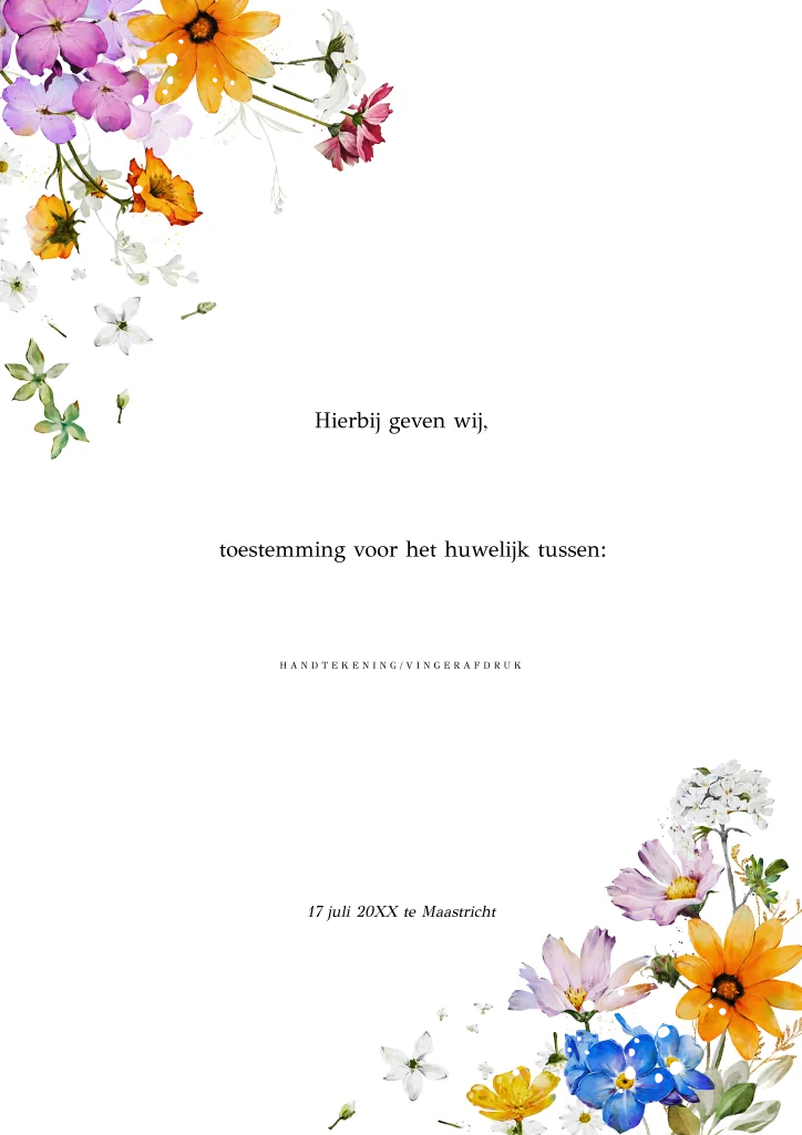 Kinderakte huwelijk zomerse bloemen en goudfolie