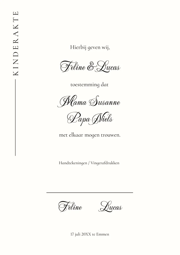 Kinderakte helemaal in stijl van jullie trouwkaart.