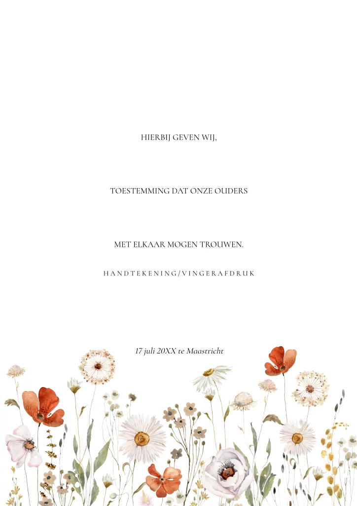Kinderakte helemaal in stijl van jullie trouwkaart met veld bloemen en goudfolie.