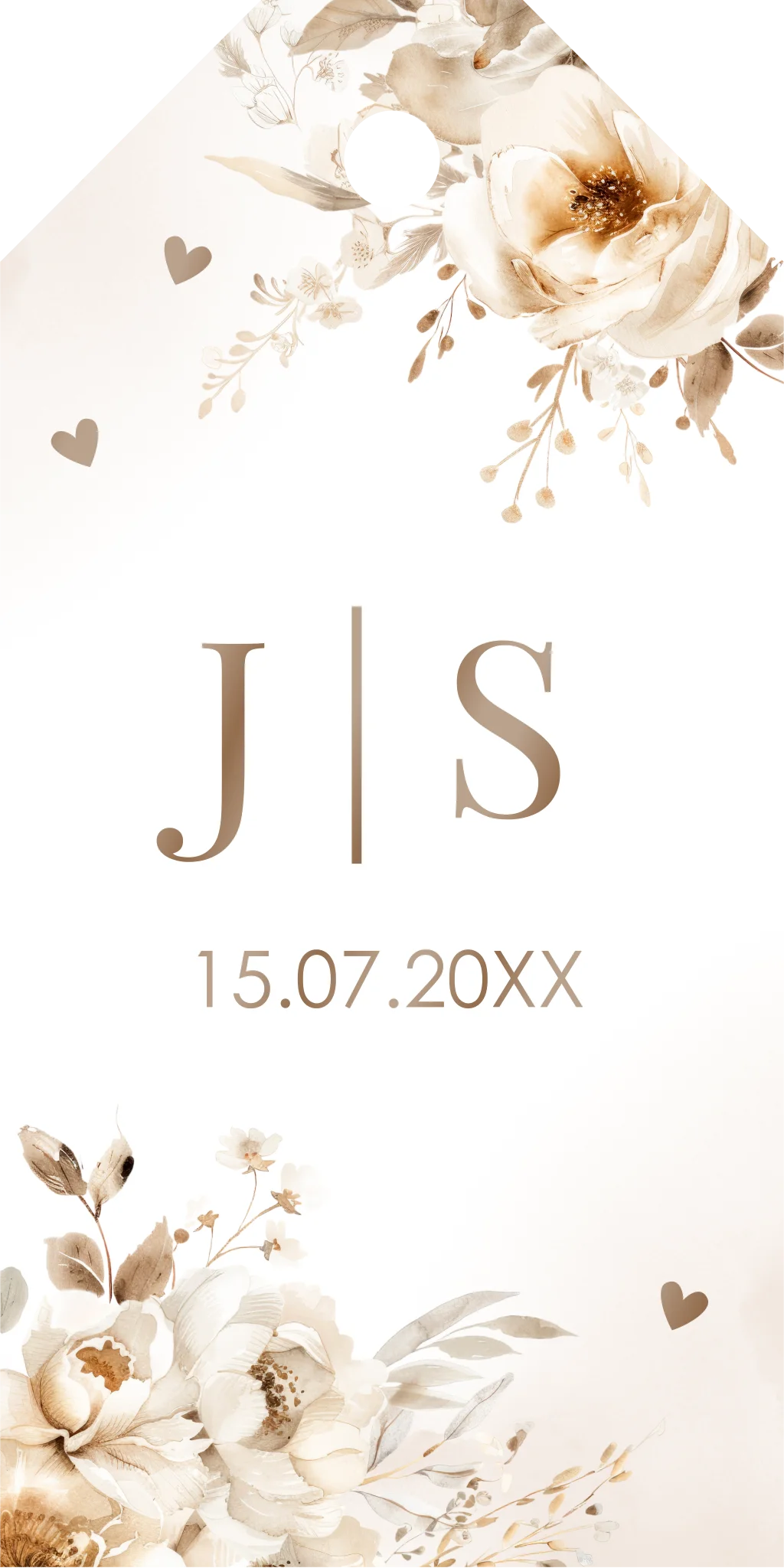 Een lief labeltje voor aan een doosje of ander klein cadeautje voor jullie gasten. Bewerk het kaartje helemaal naar jullie smaak, met jullie namen en de datum van jullie bruiloft of met een bedanktekstje. De labeltjes maken jullie huisstijl helemaal af en worden vaak bewaard als souvenir door jullie gasten.