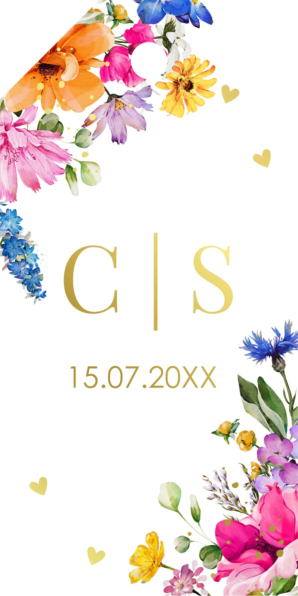 Bruiloft labeltje fleurige bloemen goudfolie