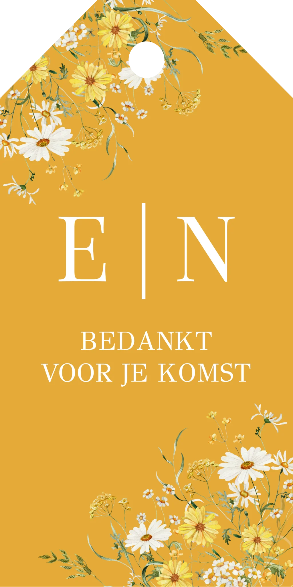 Bruiloft labeltje okergeel veldbloemen | 18 stuks