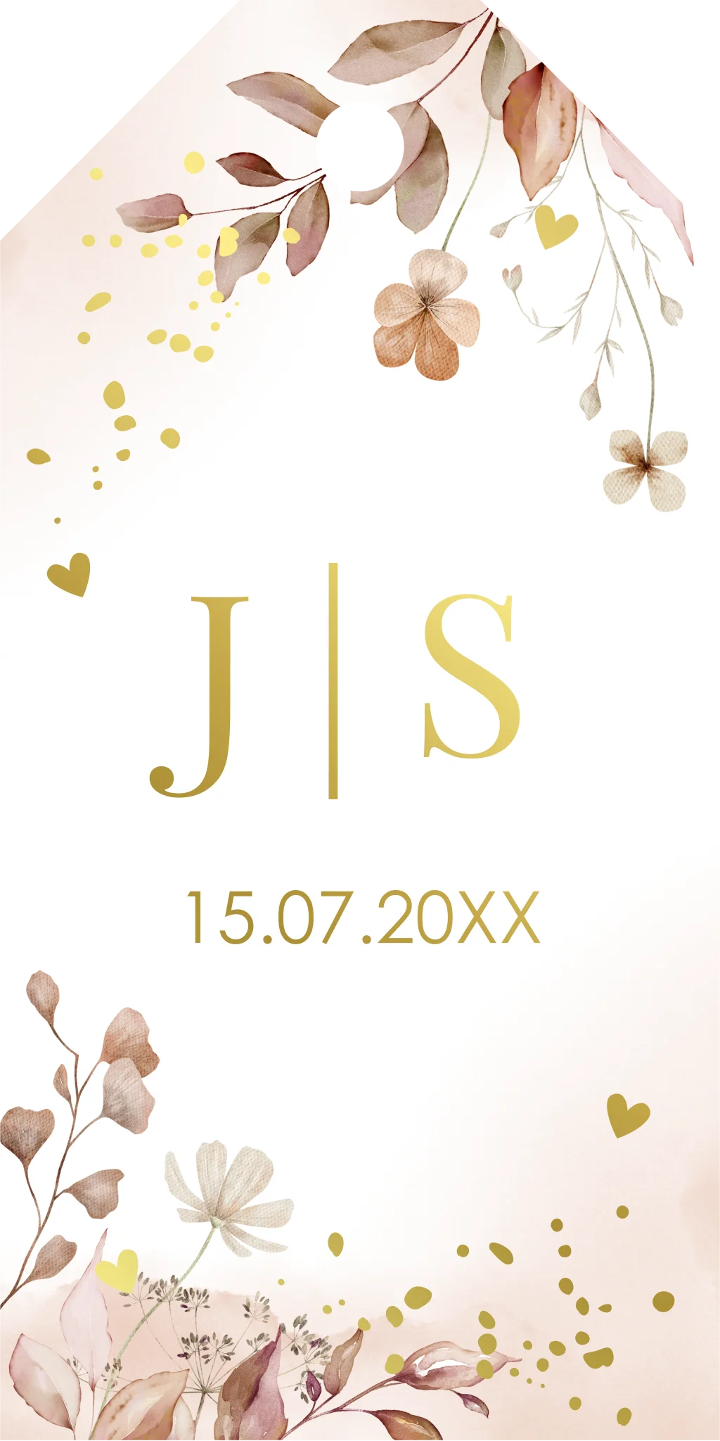 Een lief labeltje voor aan een doosje of ander klein cadeautje voor jullie gasten. Bewerk het kaartje helemaal naar jullie smaak, met jullie namen en de datum van jullie bruiloft of met een bedanktekstje. De labeltjes maken jullie huisstijl helemaal af en worden vaak bewaard als souvenir door jullie gasten.