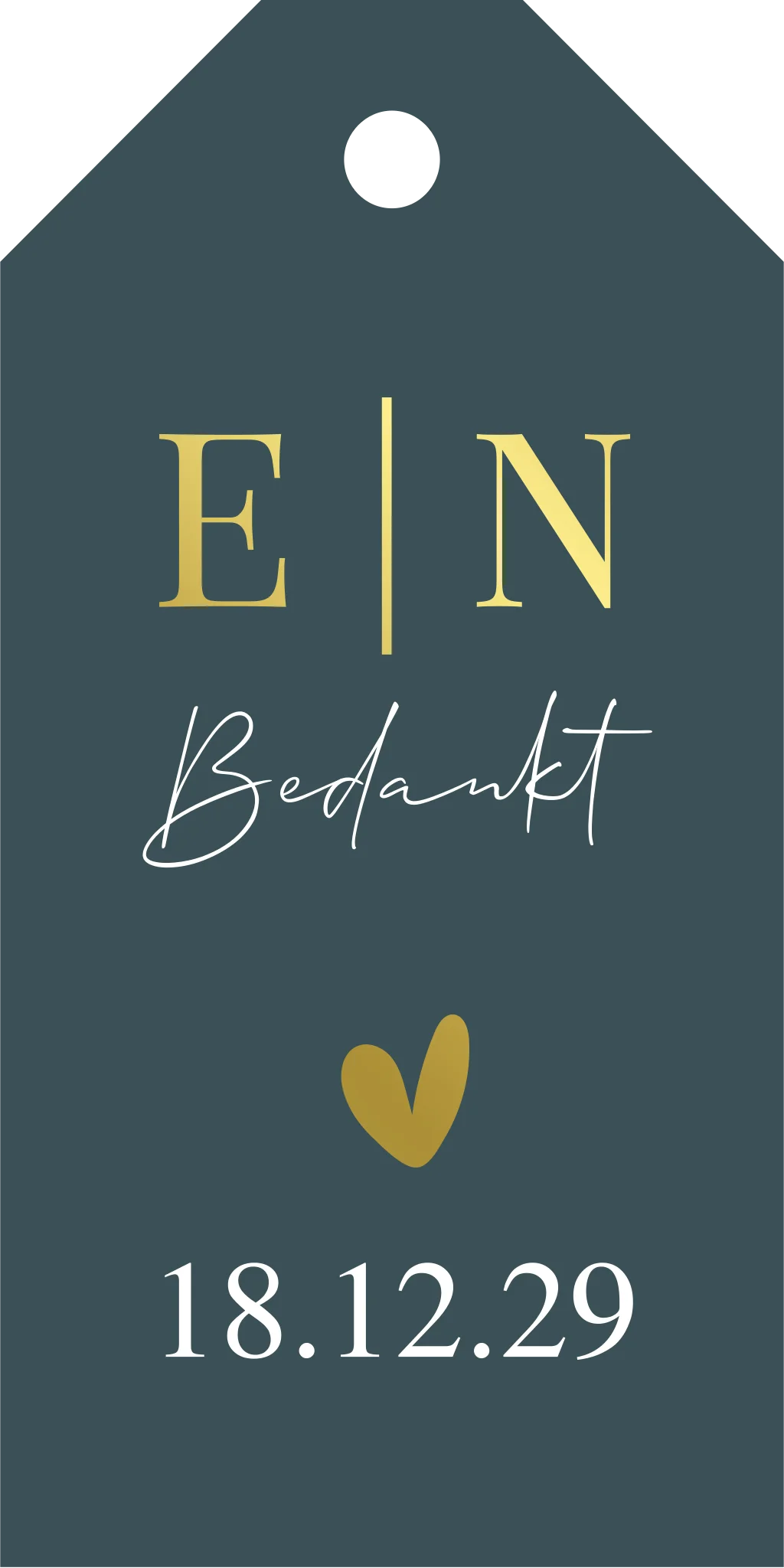 Een lief labeltje voor aan een doosje of ander klein cadeautje voor jullie gasten. Bewerk het kaartje helemaal naar jullie smaak, met jullie namen en de datum van jullie bruiloft of met een bedanktekstje. De labeltjes maken jullie huisstijl helemaal af en worden vaak bewaard als souvenir door jullie gasten.