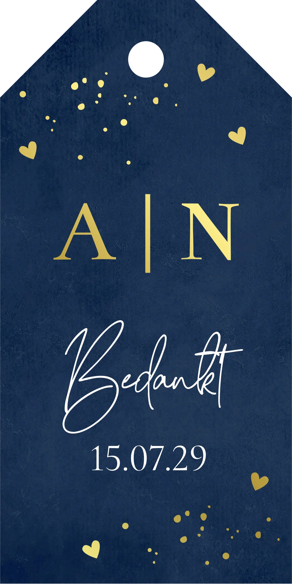 Een lief labeltje voor aan een doosje of ander klein cadeautje voor jullie gasten. Bewerk het kaartje helemaal naar jullie smaak, met jullie namen en de datum van jullie bruiloft of met een bedanktekstje. De labeltjes maken jullie huisstijl helemaal af en worden vaak bewaard als souvenir door jullie gasten.