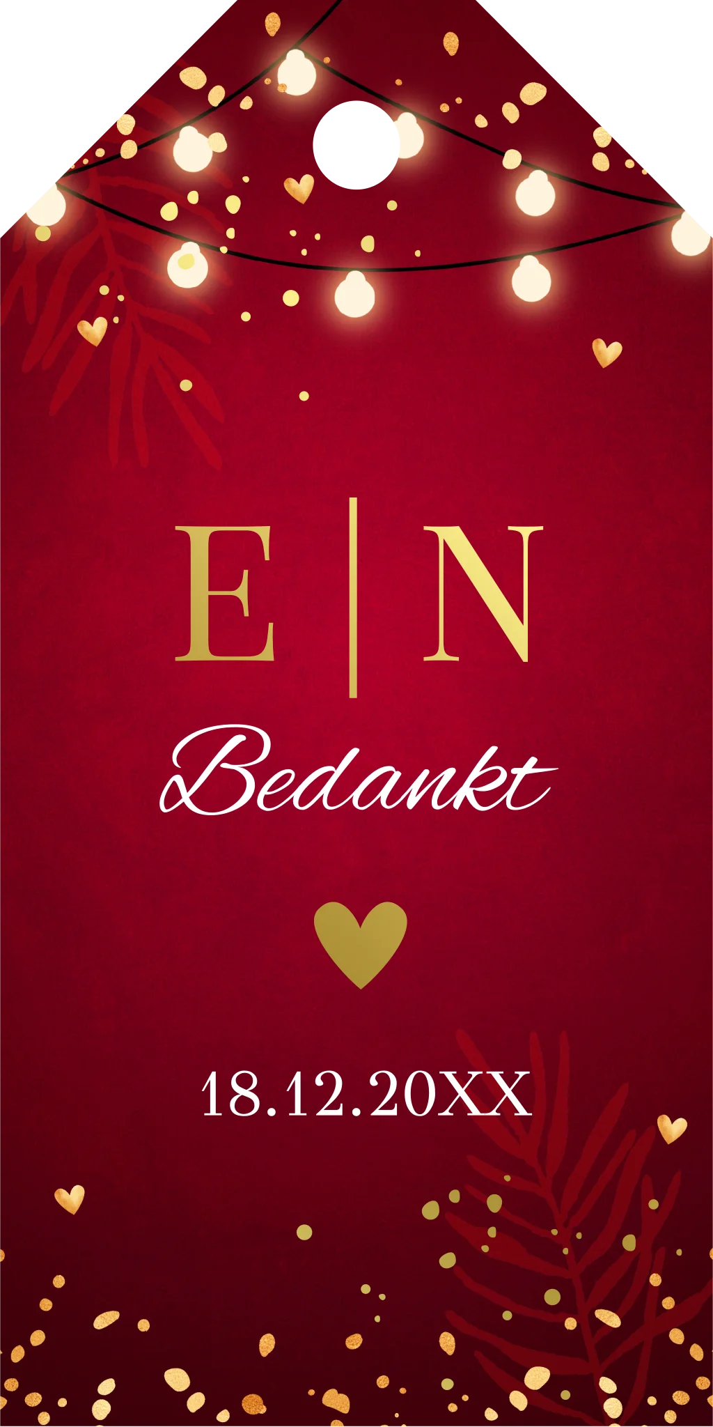 Bruiloft labeltjes winterwedding rood lampjes goudfolie | 18 stuks
