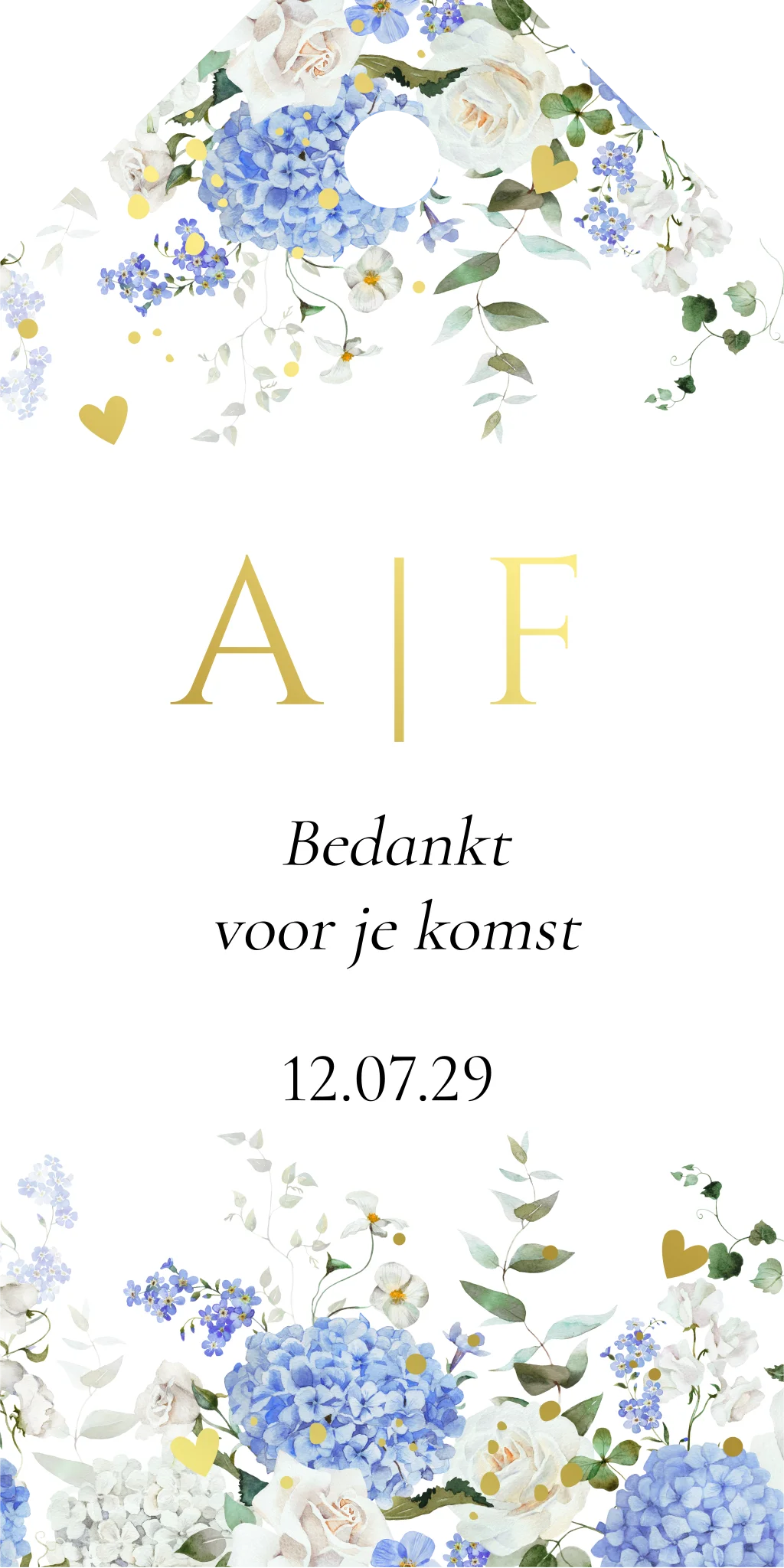 Een lief labeltje voor aan een doosje of ander klein cadeautje voor jullie gasten. Bewerk het kaartje helemaal naar jullie smaak, met jullie namen en de datum van jullie bruiloft of met een bedanktekstje. De labeltjes maken jullie huisstijl helemaal af en worden vaak bewaard als souvenir door jullie gasten.