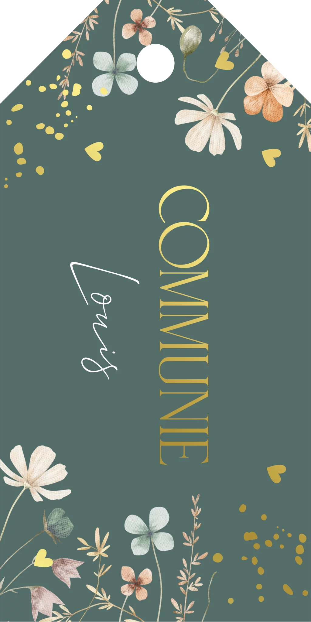 Communie labeltje groen veldbloemen goudfolie