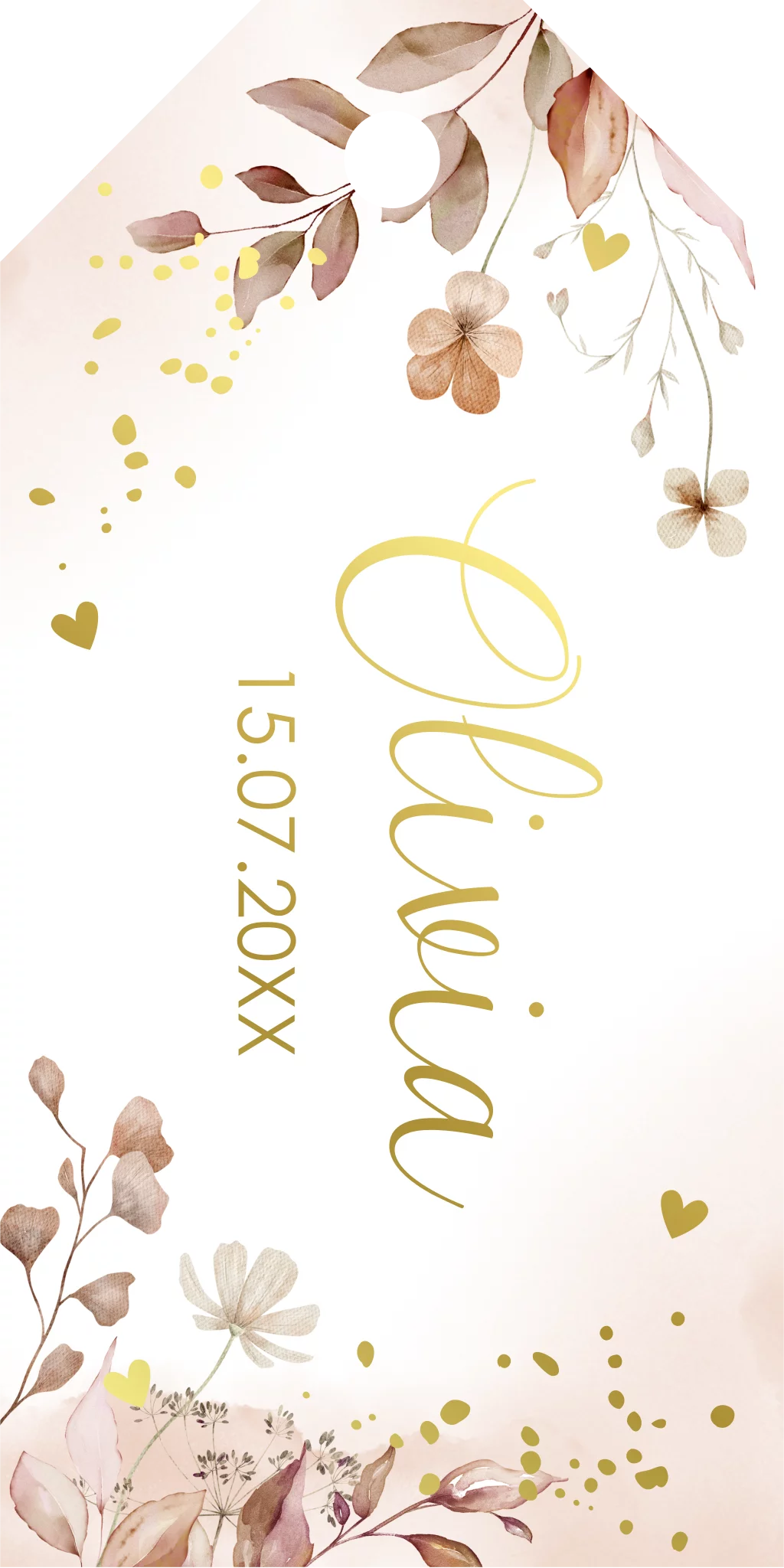 Communie labeltje terracotta bloemen goudfolie