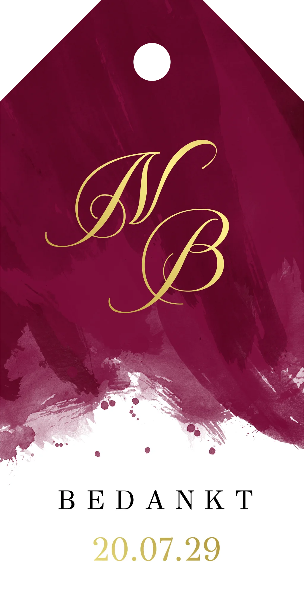 Labeltjes rood watercolour met namen en bedankt. Let op: omdat je kunt kiezen uit verschillende bevestigingsmaterialen bestel je het bevestigingsmateriaal van jouw voorkeur los bij de kaart. Specificaties van het labeltje: • 16 labels per vel. • Formaat: 3 x 6 cm. • Papiersoort: coated karton.