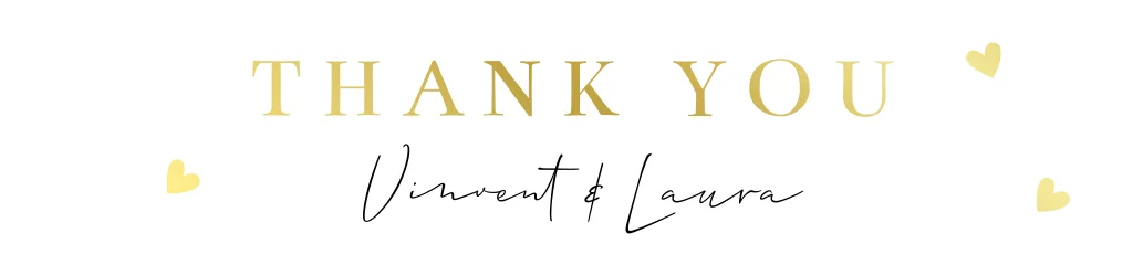 Labeltjes bruiloft Thank You met namen. Specificaties: • 16 labels per vel. • Formaat: 8,5 x 2 cm. • Papiersoort: coated karton.