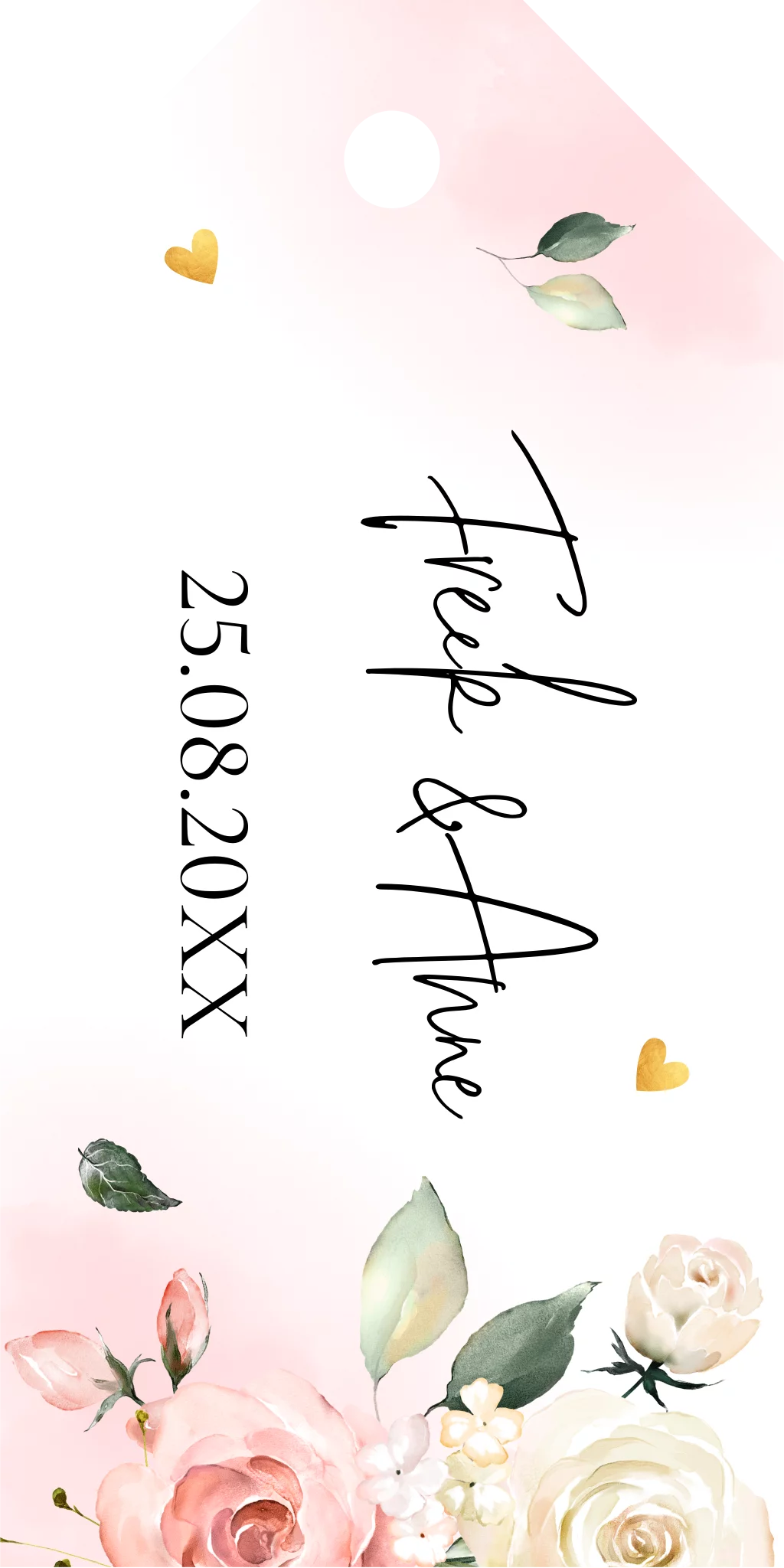 Labeltje met roze watercolour bloemen en tekst bedankt. Let op: omdat je kunt kiezen uit verschillende bevestigingsmaterialen bestel je het bevestigingsmateriaal van jouw voorkeur los bij de kaart. Specificaties van het labeltje: • 16 labels per vel. • Formaat: 3 x 6 cm. • Papiersoort: coated karton.