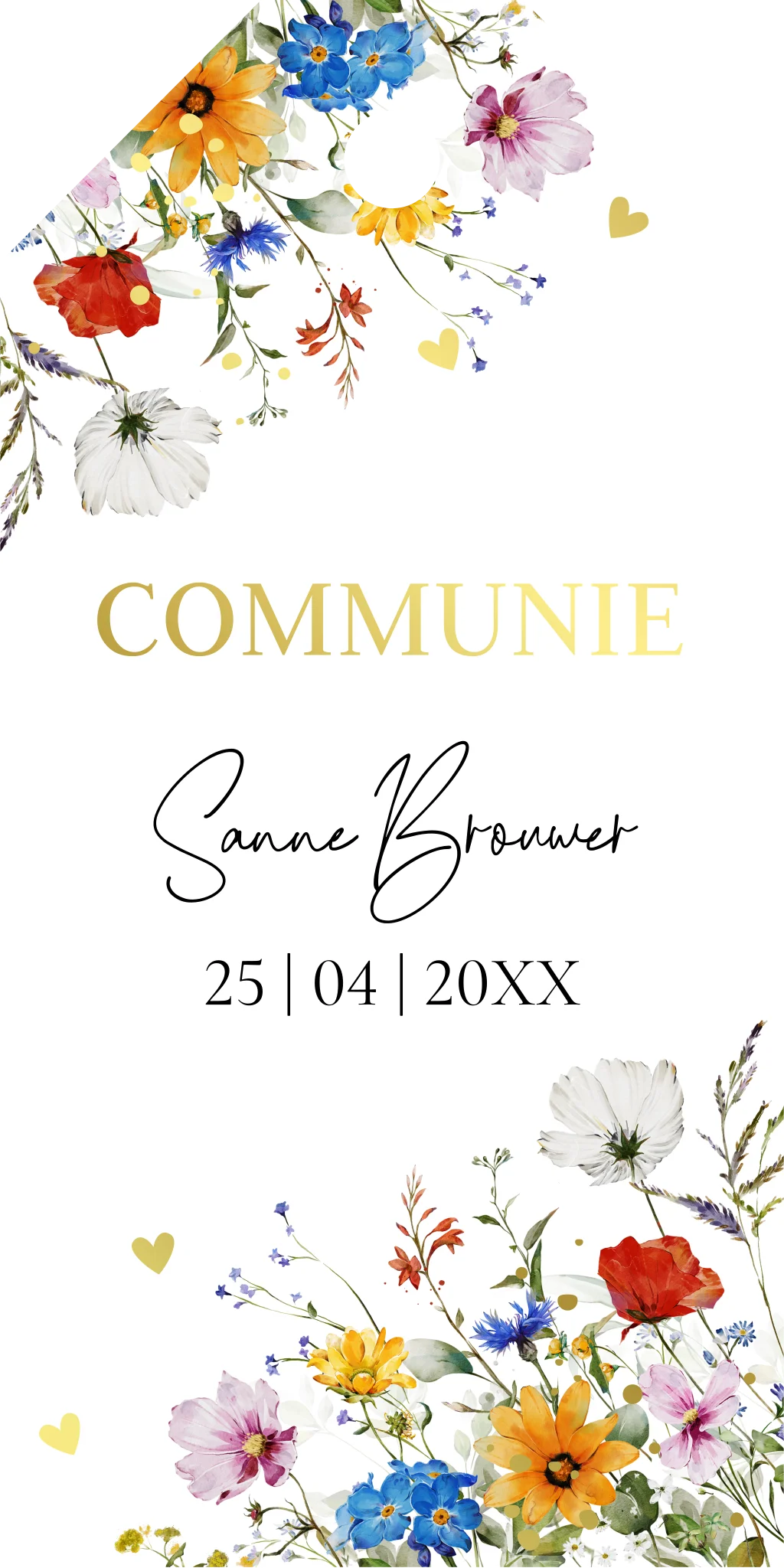 Labeltjes met veld bloemen en goudfolie. Let op: omdat je kunt kiezen uit verschillende bevestigingsmaterialen bestel je het bevestigingsmateriaal van jouw voorkeur los bij de kaart. Specificaties van het labeltje: • 16 labels per vel. • Formaat: 3 x 6 cm. • Papiersoort: coated karton.