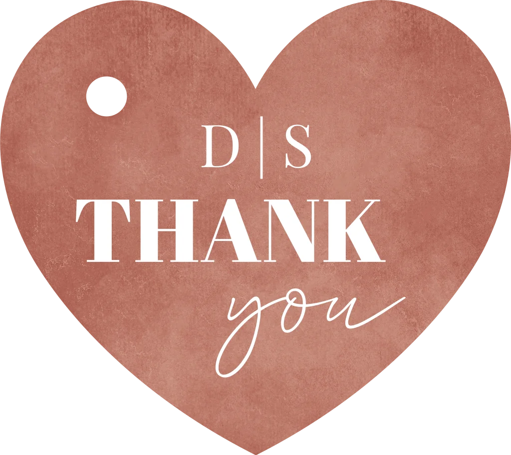 Labeltjes hartje terracotta roze thank you 46x40 mm | 16 stuks