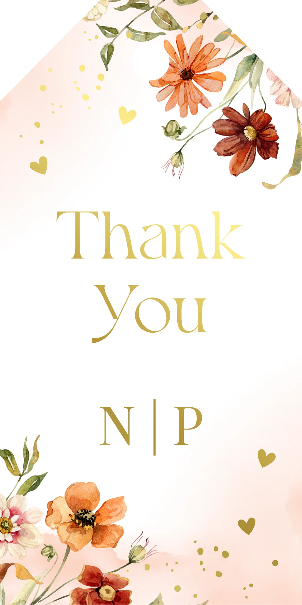 Labeltjes huwelijk bloemen pasteloranje goudfolie