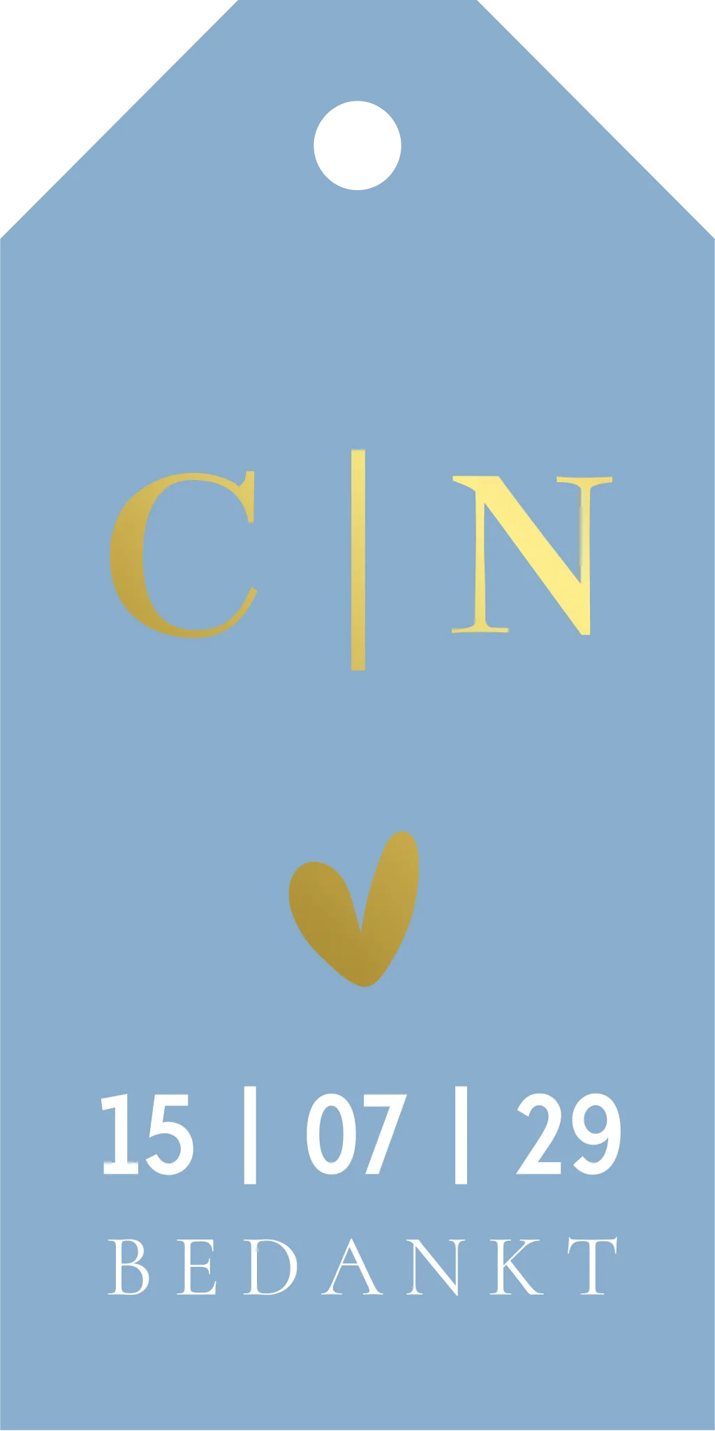 Labeltjes blauw met namen en bedankt. Let op: omdat je kunt kiezen uit verschillende bevestigingsmaterialen bestel je het bevestigingsmateriaal van jouw voorkeur los bij de kaart. Specificaties van het labeltje: • 16 labels per vel. • Formaat: 3 x 6 cm. • Papiersoort: coated karton.