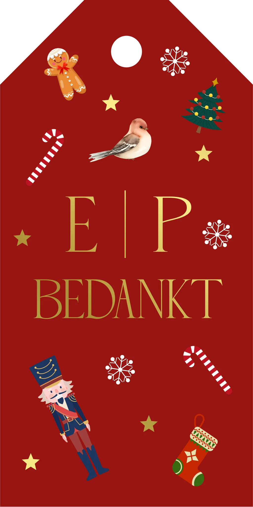Labeltjes huwelijk rood kerst figuurtjes 16 stuks