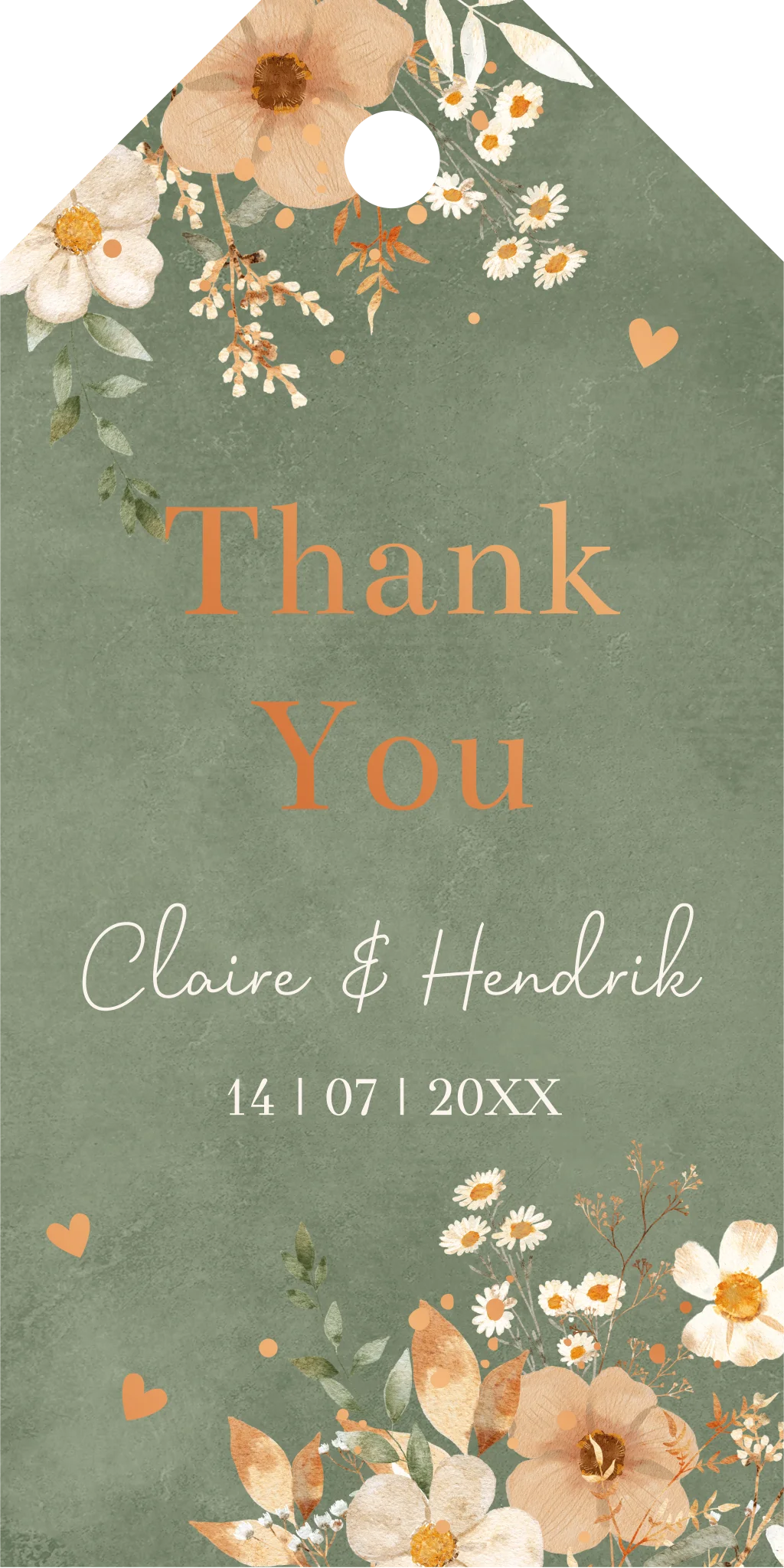 Labeltje bruiloft Thank You met bloemen. Let op: omdat je kunt kiezen uit verschillende bevestigingsmaterialen bestel je het bevestigingsmateriaal van jouw voorkeur los bij de kaart. Specificaties van het labeltje: • 16 labels per vel. • Formaat: 3 x 6 cm. • Papiersoort: coated karton.