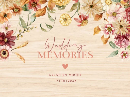 Een schitterende houten memorybox voor een bruiloft met kleurrijke aquarel bloemen. Deze houten bewaardoos is stijlvol en vrolijk. Zet op deze bewaardoos jullie namen en bewaar in deze houten herinneringsdoos alle speciale herinneringen aan jullie bruiloft.