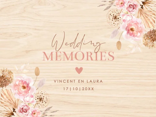 Een schitterende houten memorybox voor een bruiloft met bohemian bloemen. Deze houten bewaardoos is stijlvol en vrolijk. Zet op deze bewaardoos jullie namen en bewaar in deze houten herinneringsdoos alle speciale herinneringen aan jullie bruiloft. - De kist is gemaakt van grenen hout en heeft ronde hoeken. - Aan de binnenzijde zit tussen het deksel en de kist een wit lint. - Aan beide zijkanten zit een handgreep. - Keuze uit twee formaten: 30 x 20 of 40 x 30 cm. - Foliedruk of hoogglans is niet mogelijk. LET OP: Hout is een natuur product en kan daarom afwijken van de schermkleuren en de trouwkaart. Dit is niet te voorkomen, elke kist is anders en heeft andere nerven en groeven. Op hout wordt de kleur wit niet gedrukt. De houten memory box bruiloft wordt apart verzonden van eventueel bestelde kaartjes, zoals de trouwkaart, bedankkaartjes of menukaarten. De levertijd van de box is 3 tot 4 werkdagen.