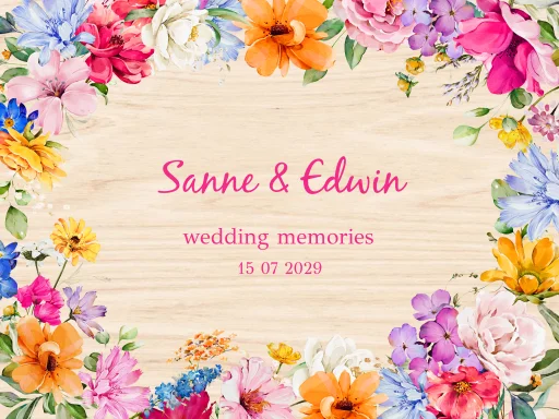 Bruiloft memorybox hout kleurrijk bloemen roze