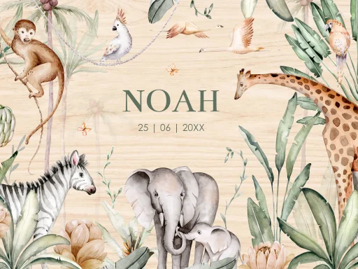Memorybox hout baby jungle dieren