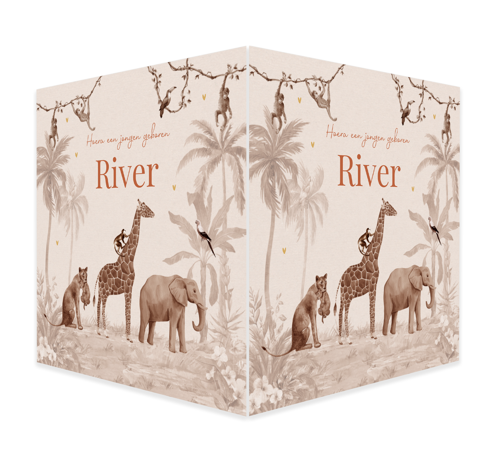 Raambord jungle dieren beige. Het raambord kan gemakkelijk bewerkt worden in onze online editor. Je maakt één zijde op in de editor en dit wordt vervolgens op twee zijdes gedrukt.