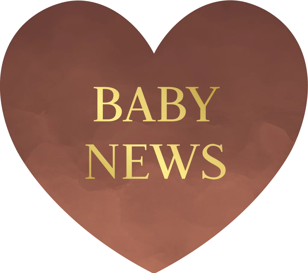 Sluitsticker hartje roestbruin "baby news" goudfolie