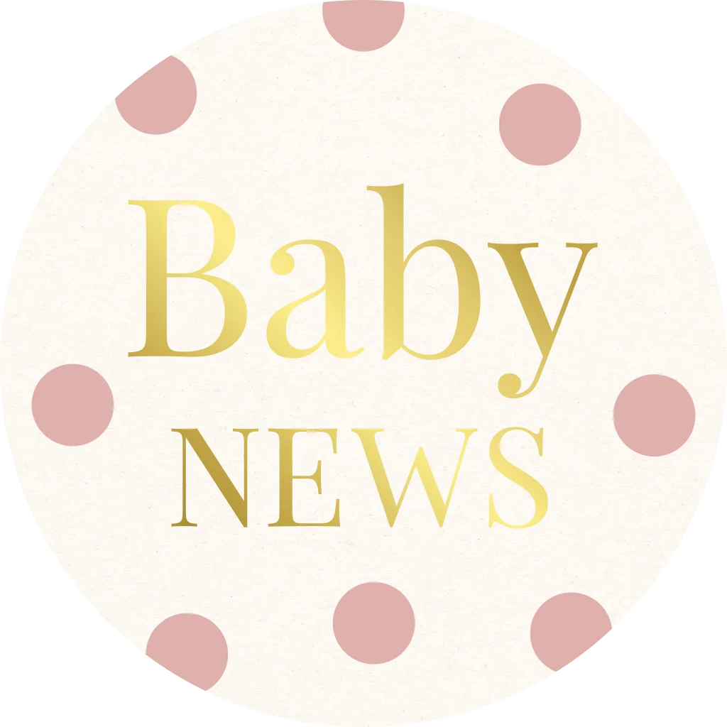 Sluitsticker "Baby news" roze dots goudfolie | 25 stuks