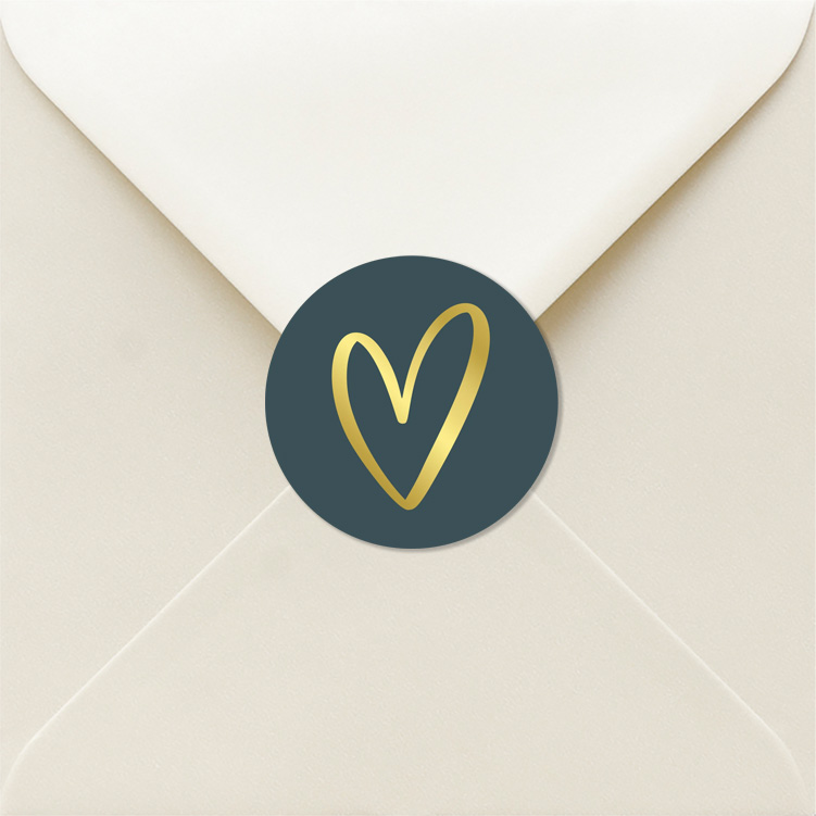 Sluitstickers rond blauw met goudfolie hartje. Tip! Je kunt de sticker bewerken in onze editor.