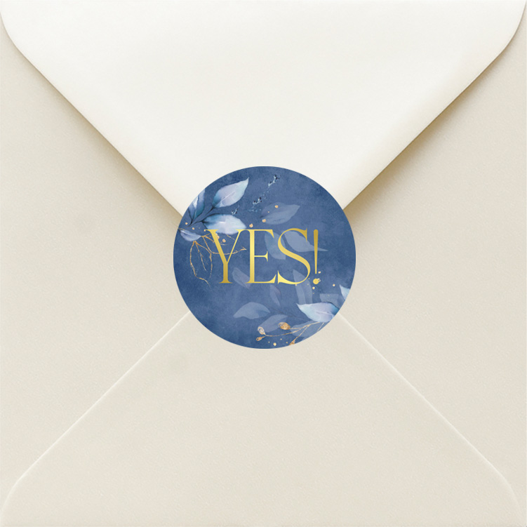 Mooie bijpassende sluitstickers trouwkaarten blauw met watercolour bladeren en goudfolie. Tip! Je kunt de sticker bewerken in onze editor. • Diameter 3,5 cm • Op één vel zitten 25 stickers Meer dan 1 vel nodig? Pas het aantal vellen aan in je winkelmandje.