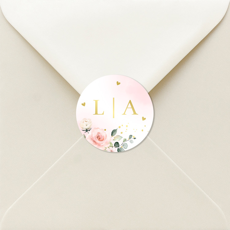 Mooie bijpassende sluitstickers huwelijk met romantische watercolour bloemen roze. Tip! Je kunt de sticker bewerken in onze editor.