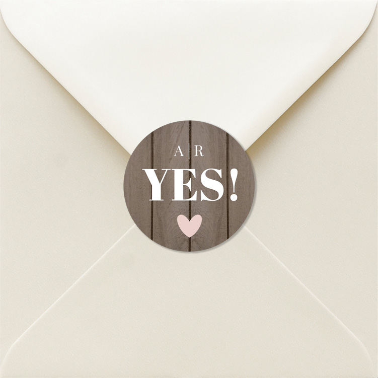 Mooie bijpassende sluitstickers huwelijk met houtlook en hartje. Tip! Je kunt de sticker bewerken in onze editor.