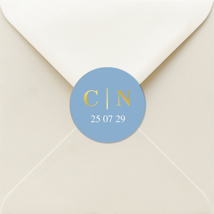 Sluitstickers huwelijk lichtblauw initialen naam goudfolie