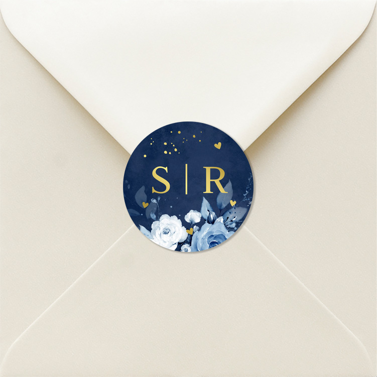 Sluitstickers donkerblauw bloemen goudfolie