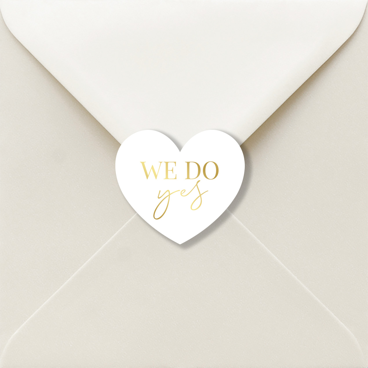 Sluitstickers huwelijk wit hart goudfolie | 25 stuks