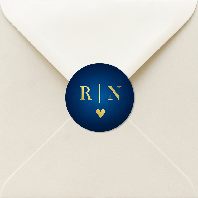 Sluitstickers blauw met goudfolie. Tip! Je kunt de sticker bewerken in onze editor.