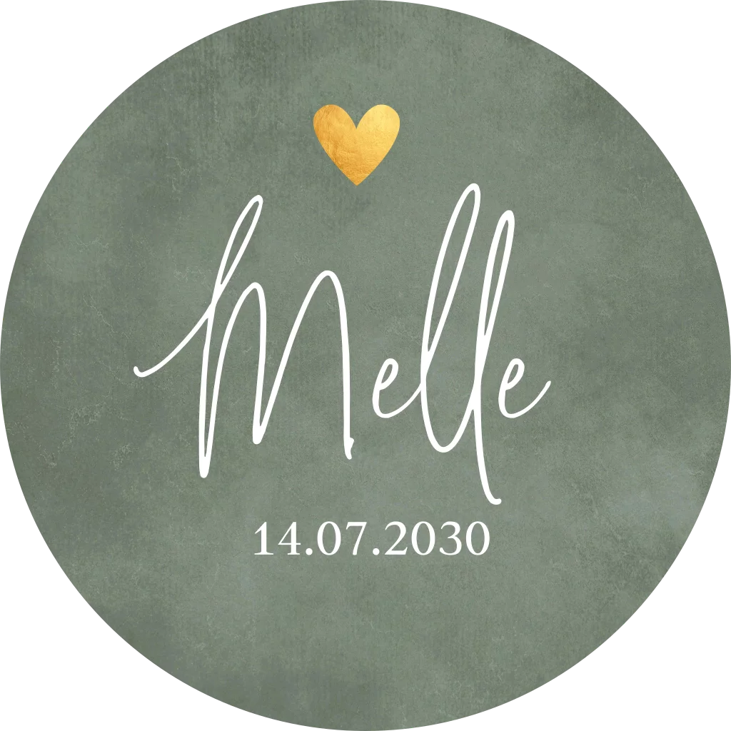 Sluitzegels groen met goudlook hartje en naam. Geen folie!
