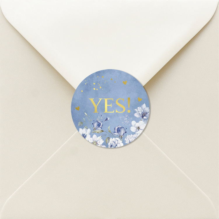 Sluitzegels huwelijk blauw bloemen goudfolie