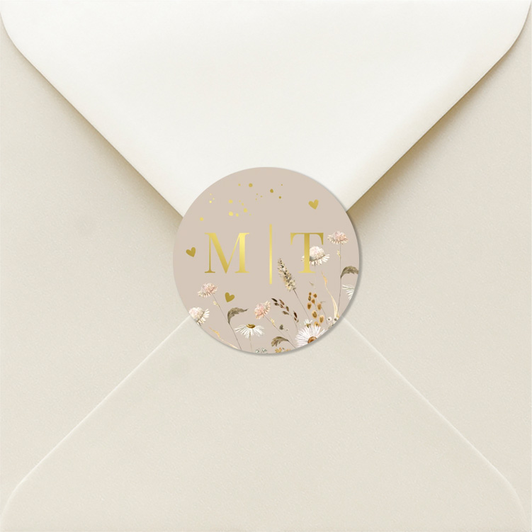 Sluitzegels huwelijk beige veldbloemen