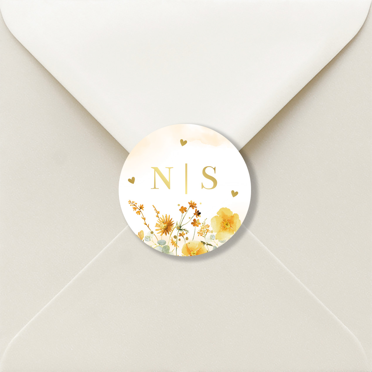 Sluitzegels huwelijk bloemen geel goudfolie