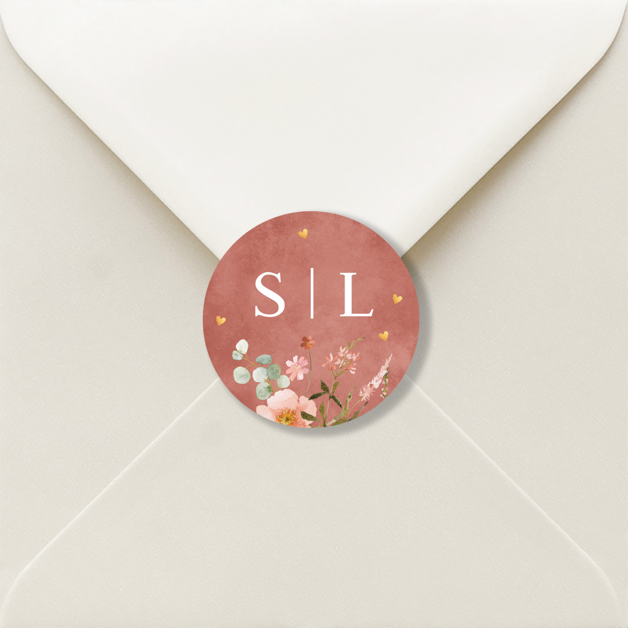 Sluitzegels huwelijk terracotta bloemen letters naam
