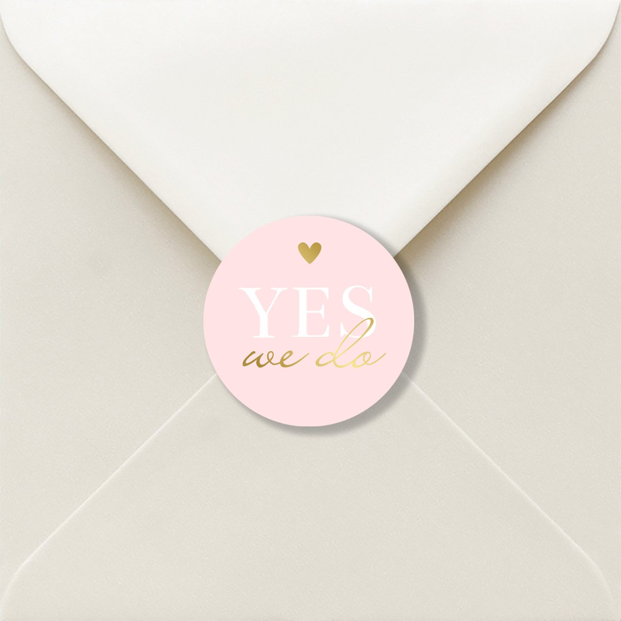 Mooie bijpassende sluitsticker roze rond met Yes We do en goudfolie. Tip! Je kunt de sticker bewerken in onze editor. • Diameter 3,5 cm • Op één vel zitten 25 stickers • Meer dan 1 vel nodig? Pas het aantal vellen aan in je winkelmandje.