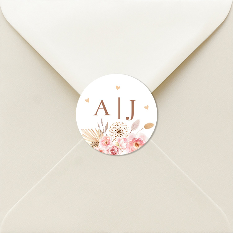 Mooie bijpassende sluitstickers trouwkaarten met bloemen. Tip! Je kunt de sticker bewerken in onze editor. • Diameter 3,5 cm • Op één vel zitten 25 stickers • Meer dan 1 vel nodig? Pas het aantal vellen aan in je winkelmandje.