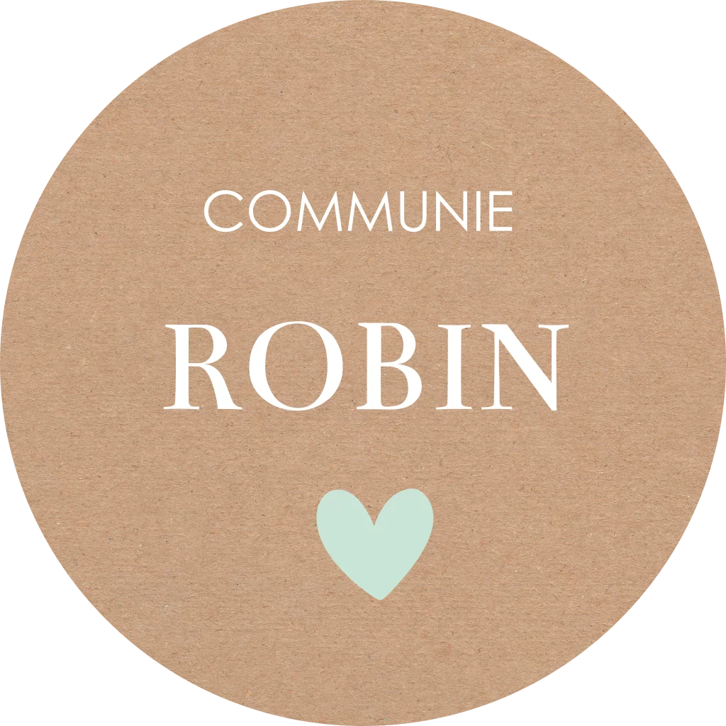 De ronde communie stickers met kraftlook en groen hartje zijn de perfecte toevoeging voor een persoonlijk tintje aan je communie-uitnodigingen of bedankkaartjes. Met hun rustieke kraftuitstraling en charmante groene hartje stralen deze stickers eenvoud en elegantie uit.