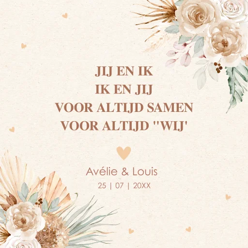 Tegeltje bruiloft bohemian bloemen beige eigen tekst