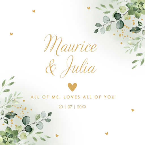 Tegeltje bruiloft met botanisch groene bladeren.